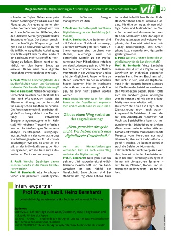 fügung zu haben. Diesen nutzt er na- soren und ihren Mitarbeitern trotzdem gitalisierung für die Landwirtschaft?