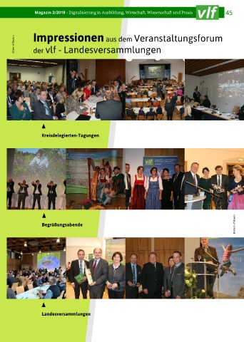 Magazin 2/2018 - 45 Bilder: vlf Bayern Impressionen aus dem Veranstaltungsforum der vlf - Landesversammlungen Kreisdelegierten-Tagungen Bild(er): vlf Bayern Begrüßungsabende Landesversammlungen